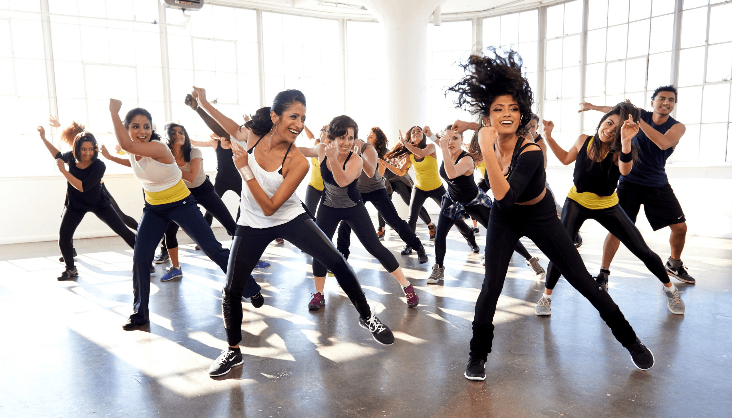 Zumba is a high-energy dance fitness class that combines Latin rhythms and easy-to-follow choreography for a fun and calorie-burning workout.